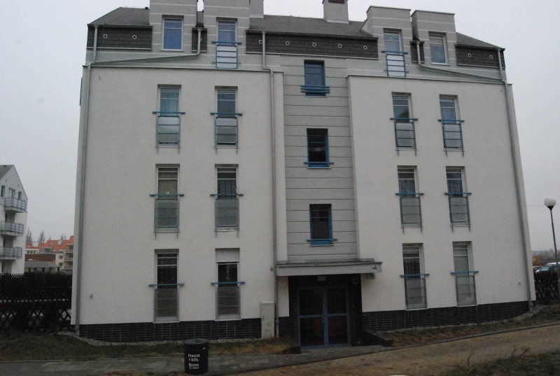 Budynek 32- mieszkaniowy ,3-klatkowy ,czterokondygnacyjny, niepodpiwniczony z poddaszem użytkowym. Budynek jest wykonany w technologii tradycyjnej, ściany fundamentowe murowane z bloczków betonowych bezpośrednio na żelbetowym ruszcie fundamentowym ułożonym na wierconych palach betonowych. Ściany kondygnacji nadziemnych murowane z pustaków ceramicznychgr.25cm. stropy wylewane na mokro z betonu B-25 o gr. płyty 18cm . dach drewniany krokwiowy kryty gontami bitumicznymi. Dane techniczne budynku: powierzchnia zabudowy-687,70m2, powierzchnia całkowita 3519,80m2,kubatura 8578m3, ilość mieszkań -32